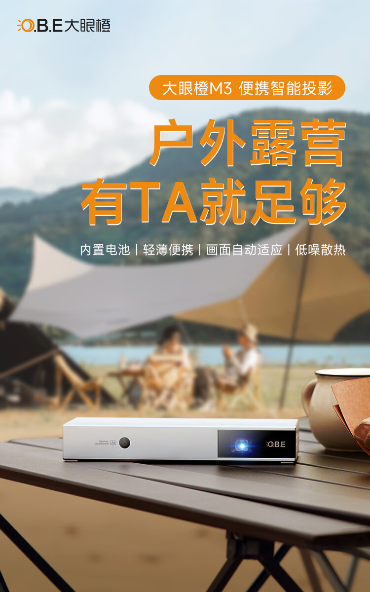大眼橙 M3 投影仪家用 便携户外 露营影院投影机