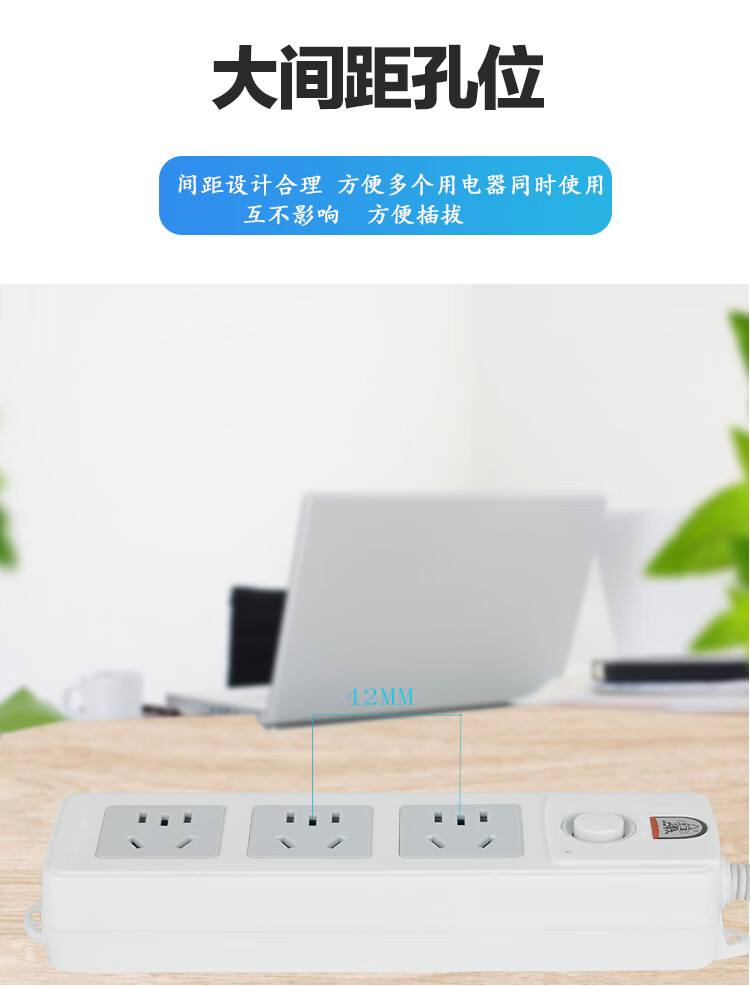 商品名称:子弹头 TS-103 2.8米线长 新国标安全插座 插排