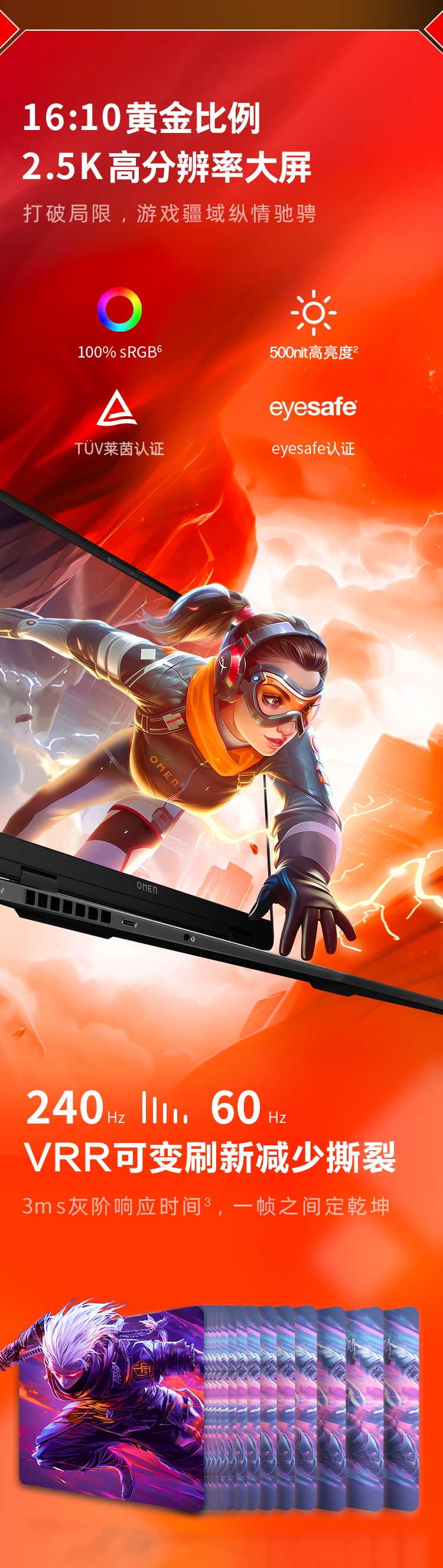 商品名称:hp OMEN 暗影精灵11 i7-14650HX 16英寸游戏笔记本电脑 16-am0000TX - 黑色
